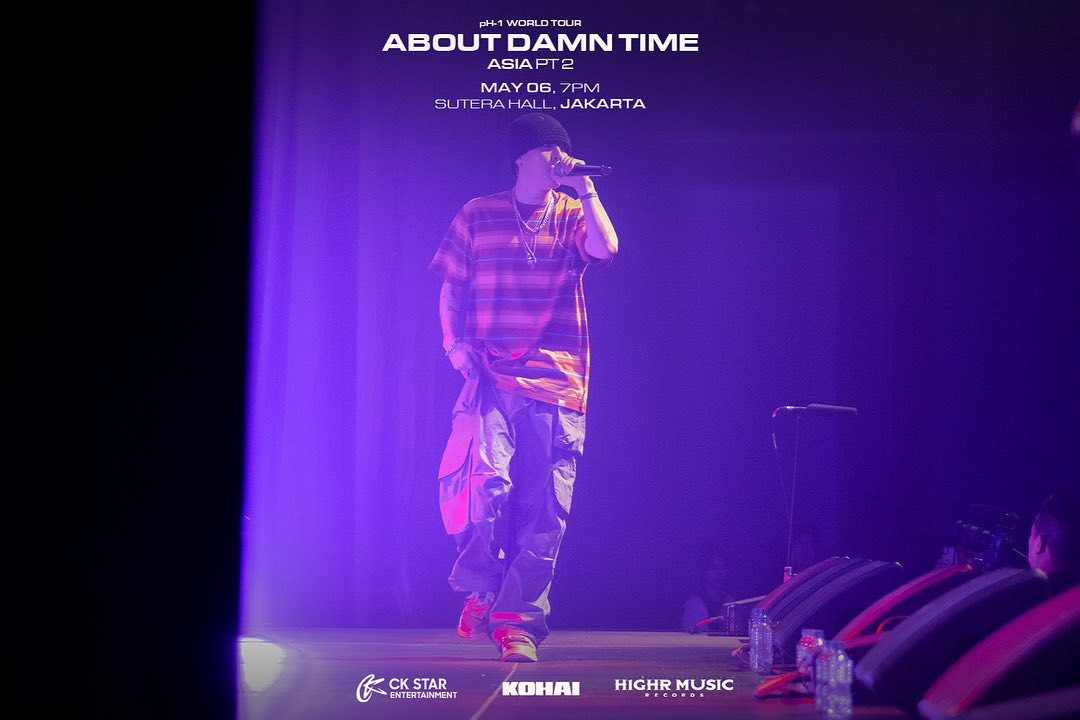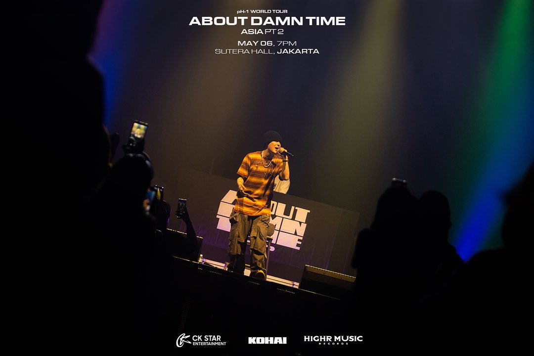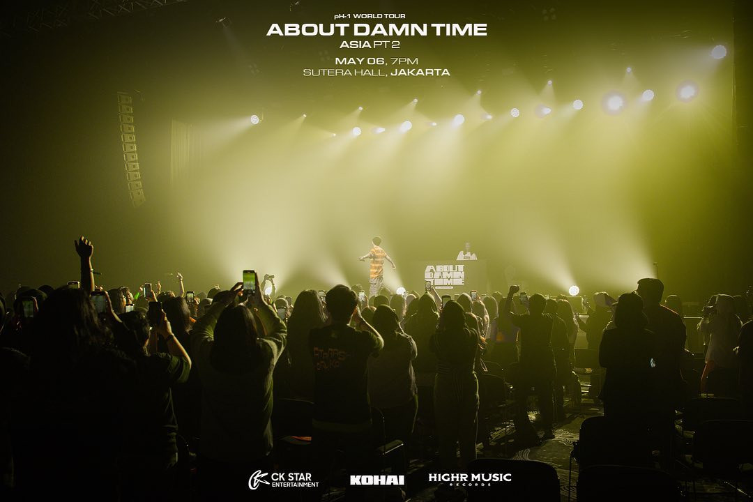 Kedatangan pH-1 di Jakarta sudah sangat dinantikan oleh para penggemarnya. Terasa sekali antusiasme mereka saat menghadiri konser bertajuk About Damn Time yang digelar di Sutera Hall, Mall @ Alam Sutera, 6 Mei 2023. Dengan panggung dan penonton yang humble, konser yang digelar oleh CK Star Entertainment ini tidak hanya berlangsung meriah tetapi juga hangat. Selama hampir dua jam, pH-1 menghibur para penggemar yang terbagi ke dalam beberapa section penonton dengan lagu-lagu hitsnya yang menghibur dan menghentak. Tidak satu pun dari para penonton bisa diam berdiri kecuali mereka menari mengikuti irama.