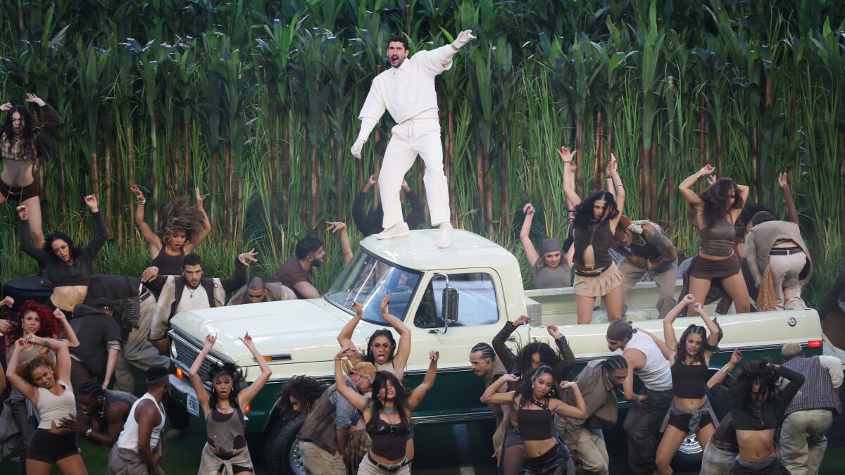 Secara musikal, Bad Bunny merangkai berbagai era dan genre Latin dengan mulus. Reggaeton dan dembow berpadu dengan salsa klasik, bomba, dan plena yang dimainkan secara organik oleh band brass dan perkusi. Ia membawakan lagu-lagu dari album terbarunya “Debí Tirar Más Fotos” yang meraih Album of the Year di Grammy 2026, serta hit-hit sebelumnya, sambil menyelipkan pesan sosial dan politik. Lagu seperti ‘El Apagón’ menyinggung isu kolonialisme budaya dan krisis listrik di Puerto Rico, ditampilkan melalui visual pekerja dan kehidupan sehari-hari masyarakat pulau tersebut.